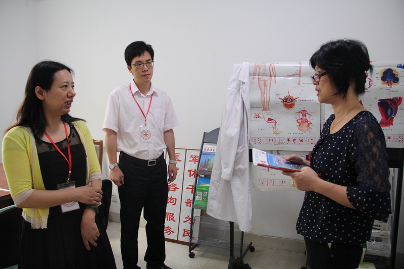 在罗山八居红十字服务站,区红十字会党员青年一行还与居委会红十字条线负责人交流了红十字工作开展情况。