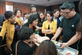 为了强化骨干师资队伍,充分发挥师资面向广大市民普及的“种子”作用,浦东新区红十字会组织骨干救护培训老师开展了CPR(心肺复苏)+AED专题培训。培训中,讲课导师对AED的结构、使用方法、后期管理维护做了全面详细的介绍,并对师资们的提问进行了一一解答。同时AED训练器供货公司的培训师们也就AED的正确使用做了操作演示。为了保证每一位师资都能熟练掌握AED的操作,便于日后正确开展教学活动,讲师们将师资分成6个小组,以小组教学的形式让每一位师资动手操练,做到人人动手人人过关,有问必答,有错必纠。