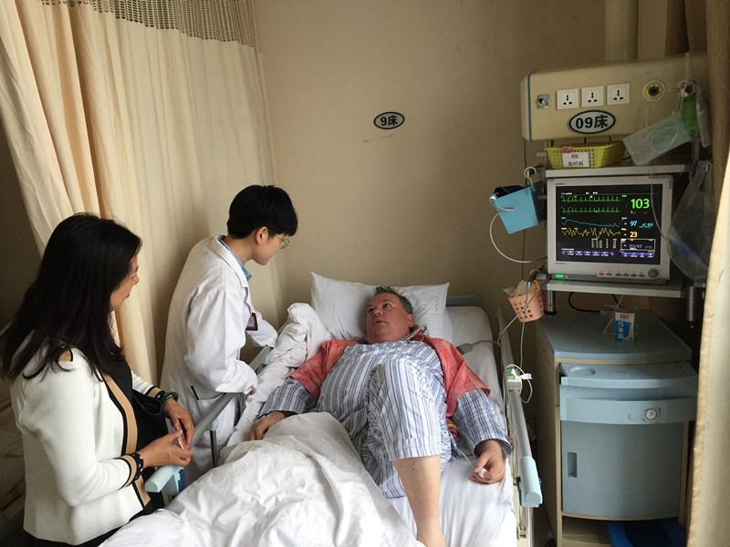 当浦东新区红十字会工作人员到医院看望正在医院进一步治疗的Joseph Daniels 先生时,他已经可以谈笑风生了,开心地做好胜利的手势。他是和所在公司的经理和同事一起去无锡出差,途径上海。对在机场发生的那“生死”经历,他听了也倍感惊讶,表示回国后会让医生好好检查一下。