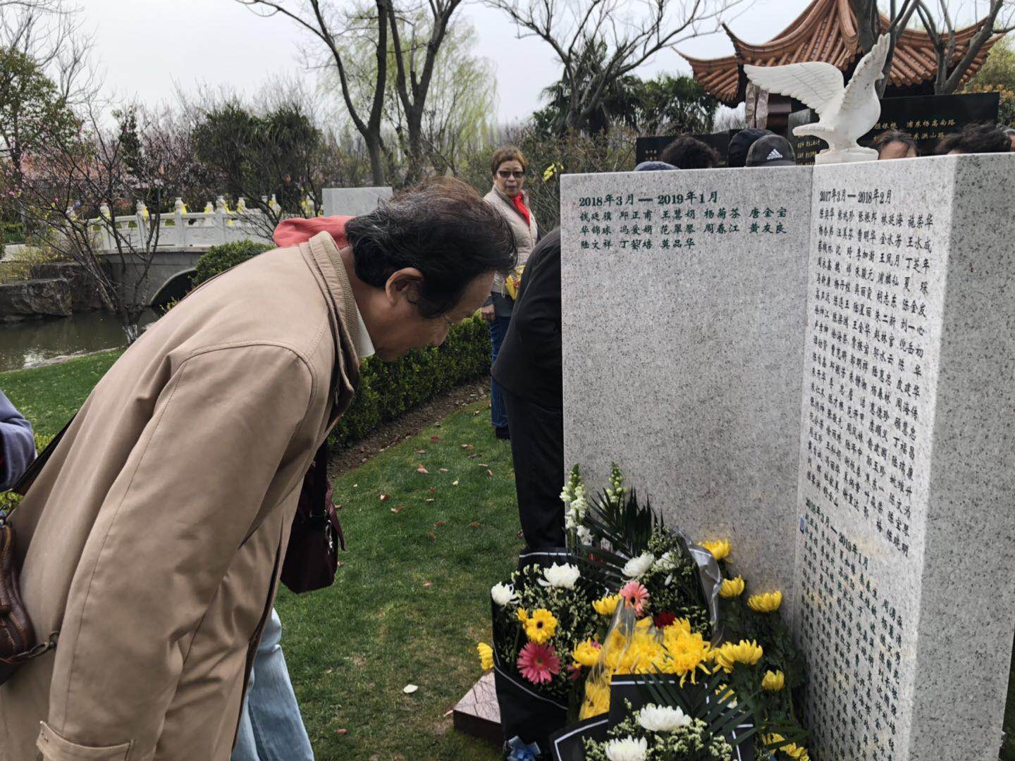 3月20日,浦东新区红十字会组织新区2019年遗体捐献实现者家属来到浦东临港福寿园,瞻仰先人。