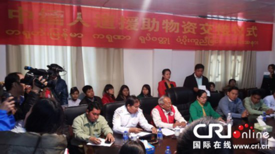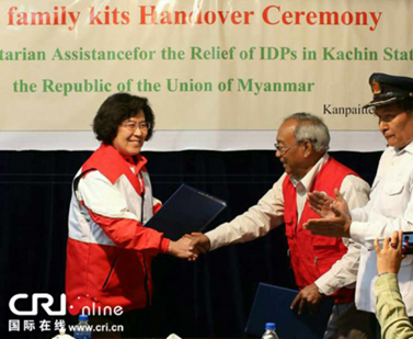 2月22日下午,在缅甸甘拜地举行的物资移交仪式上,中国红十字会郝林娜副会长与缅甸红十字会秘书长吴腊忒博士签署了此次人道援助物资交接相关文件。郝林娜副会长还亲手将装有包括大米、食用油、棉被等在内的赈济家庭箱交给数位克钦地区安置点民众代表。吴腊忒博士表示,缅中红十字会成功进行过多次人道主义援助合作,中国红十字会这次提供的援助物资都是克钦地区生活困难的民众急需的生活物资,希望以后能和中国红十字会进一步加强合作。