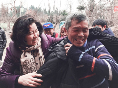 陕西省山阳县十里铺村,郝林娜帮助困难群众试穿新衣。