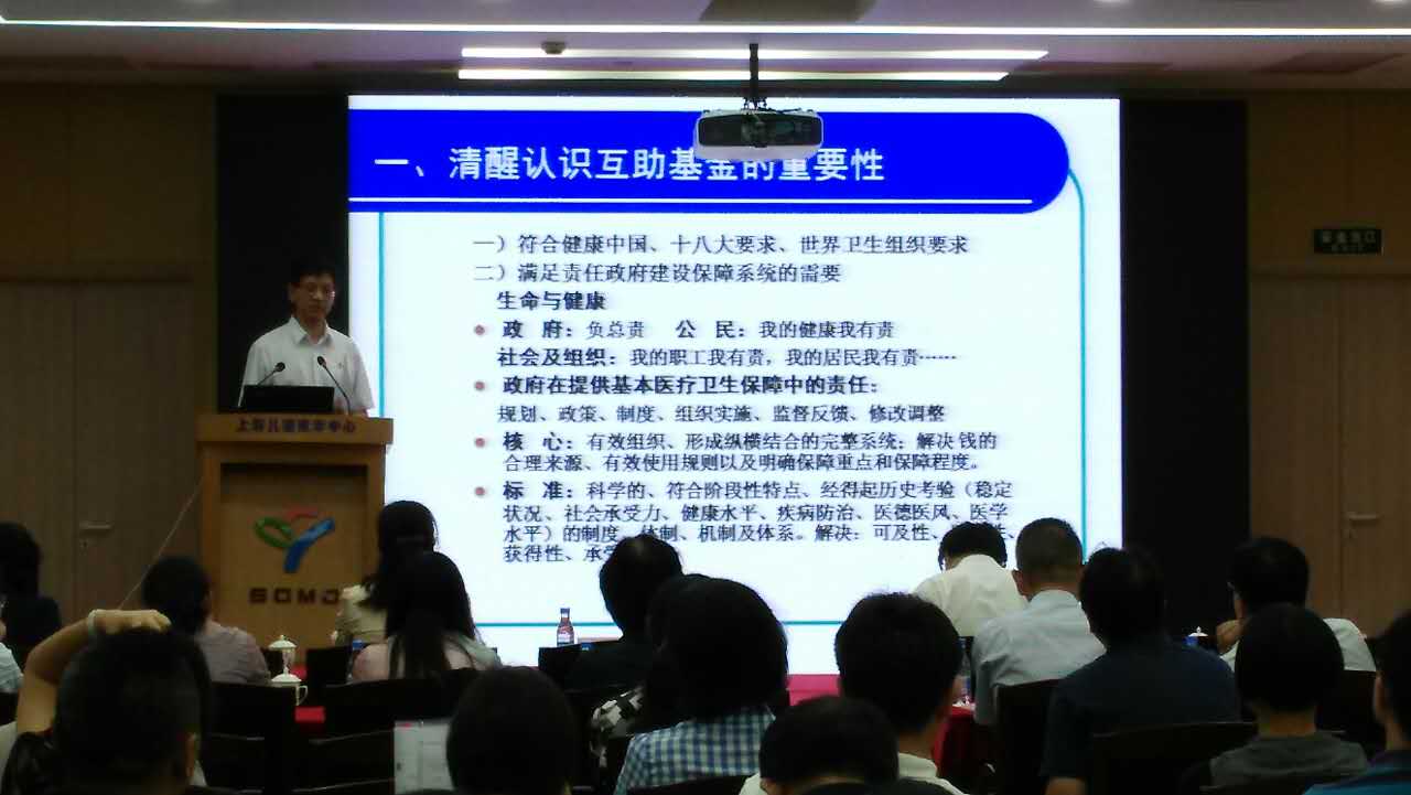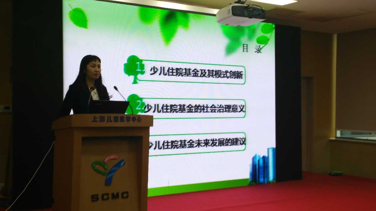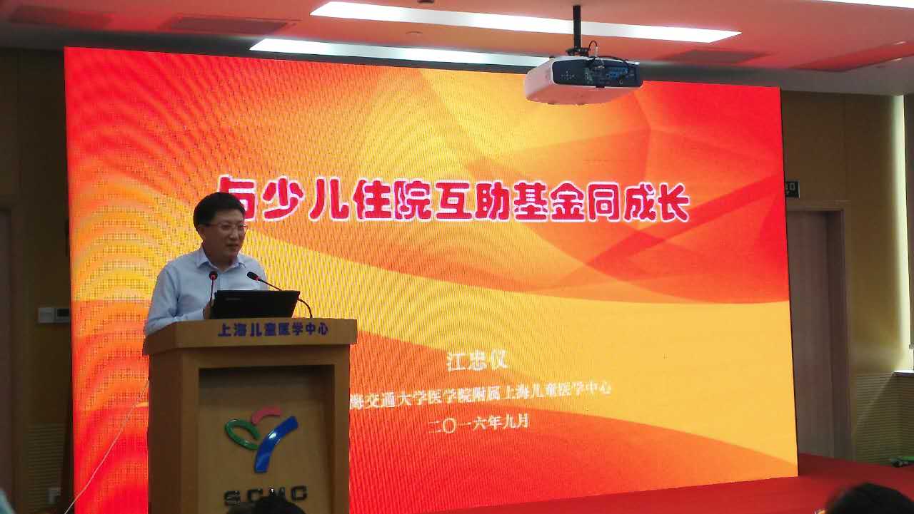 上海儿童医学中心院长江忠仪作《与少儿住院互助基金同成长》的报告