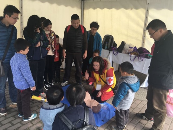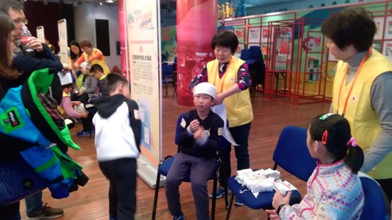 上海市红十字会联合浦东新区红十字会,分别在世纪公园和市青少年活动中心禁毒馆,组织开展活动,进行展示体验。市红会通过向市红十字应急救护培训督导员队伍招募志愿者的形式,组织市红十字应急救护培训骨干师资在市青少年活动中心禁毒馆,现场指导参赛队进行伤员头部、膝部包扎,完成应急安全体验任务,并特别配置了针对性的教学视频和易拉宝宣传画,同时向参赛者发放市红十字会印有“人人学急救,急救为人人”的笔袋,以宣传纪念。浦东新区红十字会则在世纪公园,参与开展了青少年应急安全体验营活动,免费提供心肺复苏、AED自动体外除颤仪使用,并现场示范指导,提供体验服务。活动现场气氛活跃,互动积极。