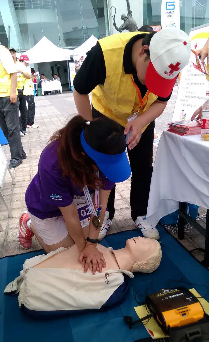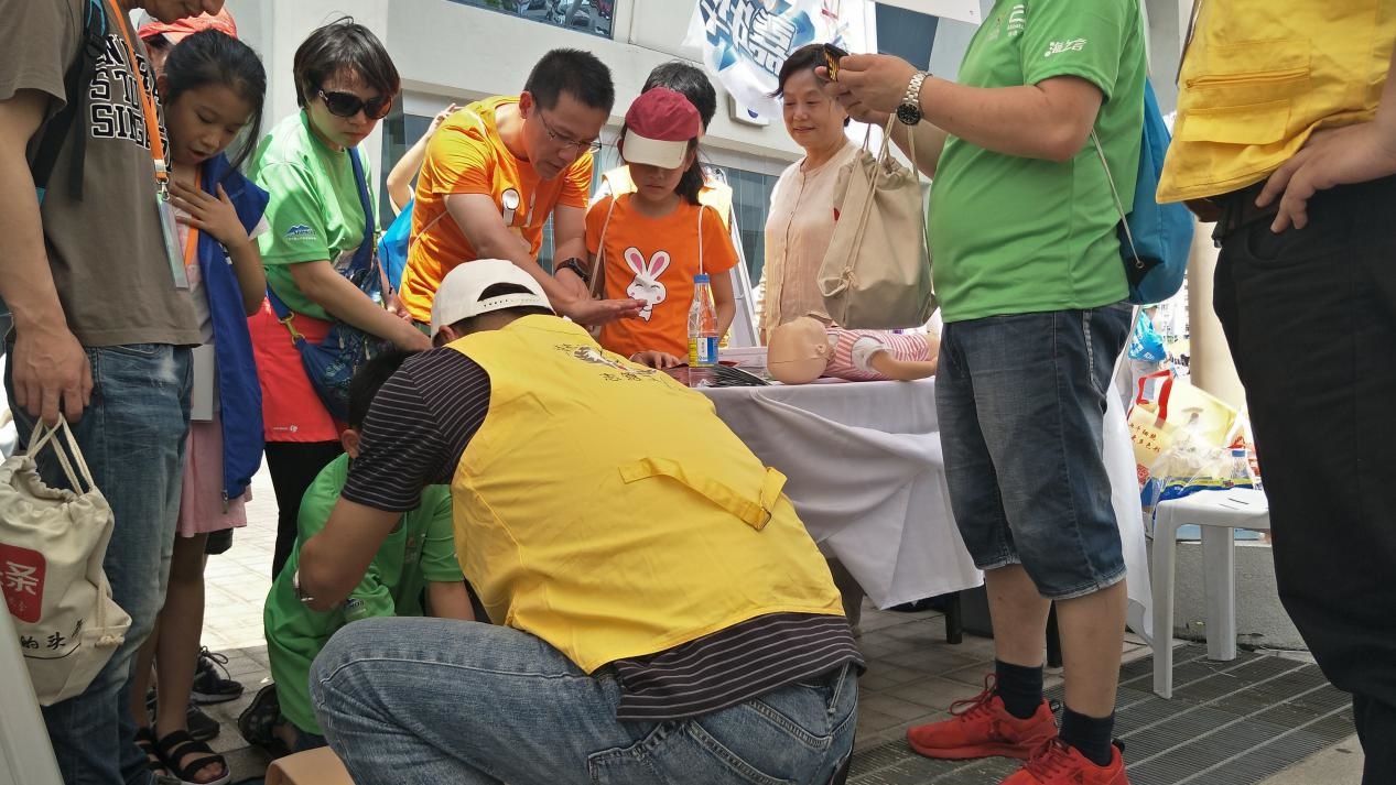 2017中国坐标·上海城市定向户外挑战赛是一项“全民参与、全城热动、全能体验”的新兴时尚全民运动赛事,市红十字会每年参与并协助保障。今年,市红会在上海体育场嘉年华展示区,开展了红十字文化宣传、现场应急救护知识传播、现场体验CPR+AED体验教学,深受大家欢迎。参赛者成群结队前来咨询和体验,一些家长还特意带孩子前来学习。来自普陀区红十字会的姚惠军老师作为志愿者,在当天活动中耐心地为众多参赛市民进行救护知识讲解和心肺复苏等操作体验教学。