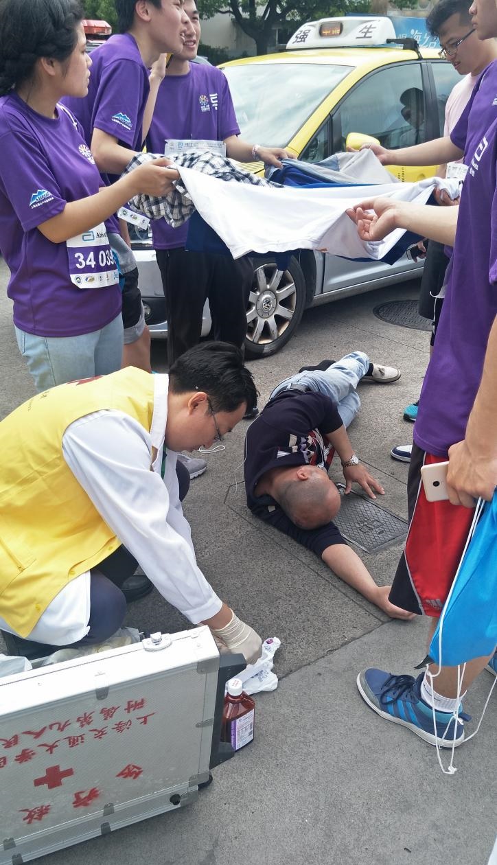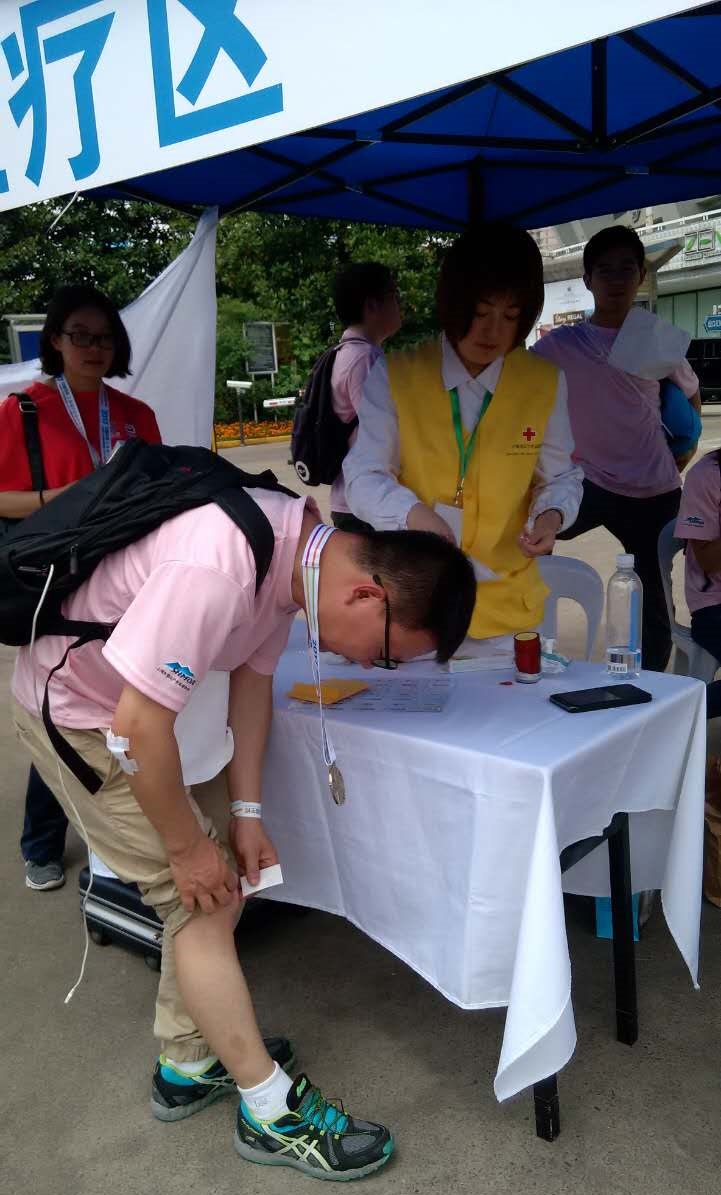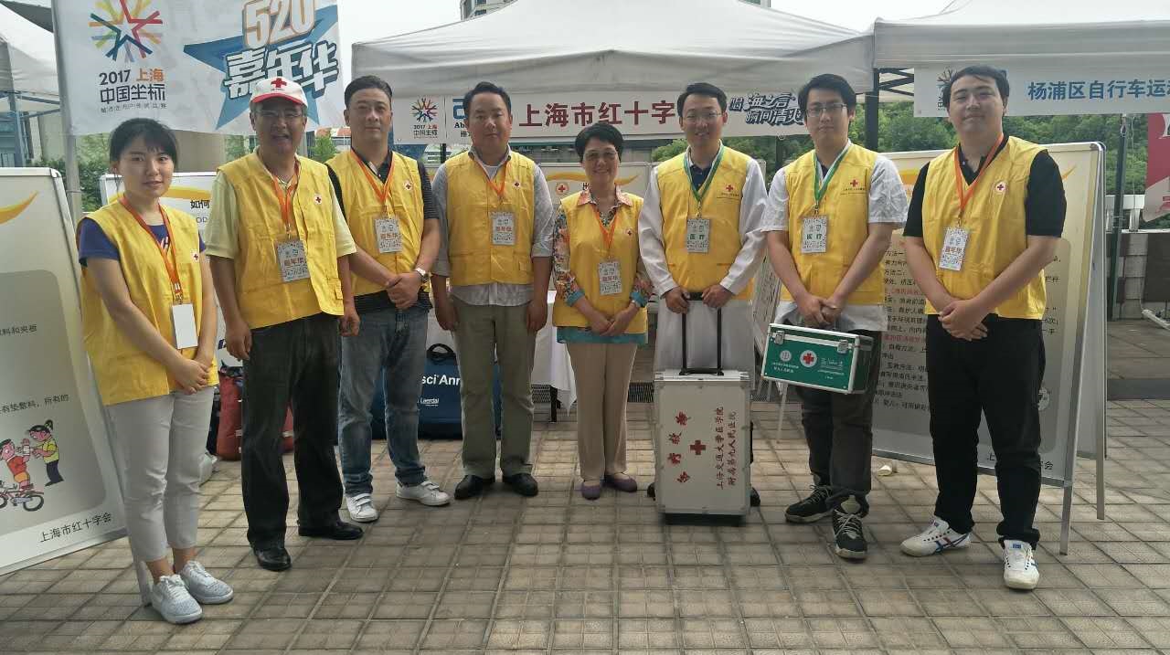 上海市第一人民医院和上海市第九人民医院代表本市红十字冠名医疗机构分别安排了骨科、外科等经验丰富的主任医生等参与活动,为赛事提供医疗保障服务。医护人员不顾高温烈日,坚守岗位,连续为伤者服务,处理中暑、指甲断裂、四肢皮肤擦伤、手指异物取出、下肢关节扭伤、下肢抽筋等95例,还在第一时间为突发车祸的头颅外伤合并足踝外伤者进行伤口处理,圆满完成医疗保障任务。医务人员的行为,受到主办方和周围群众好评,有效诠释了红十字的“人道、博爱、奉献”精神。