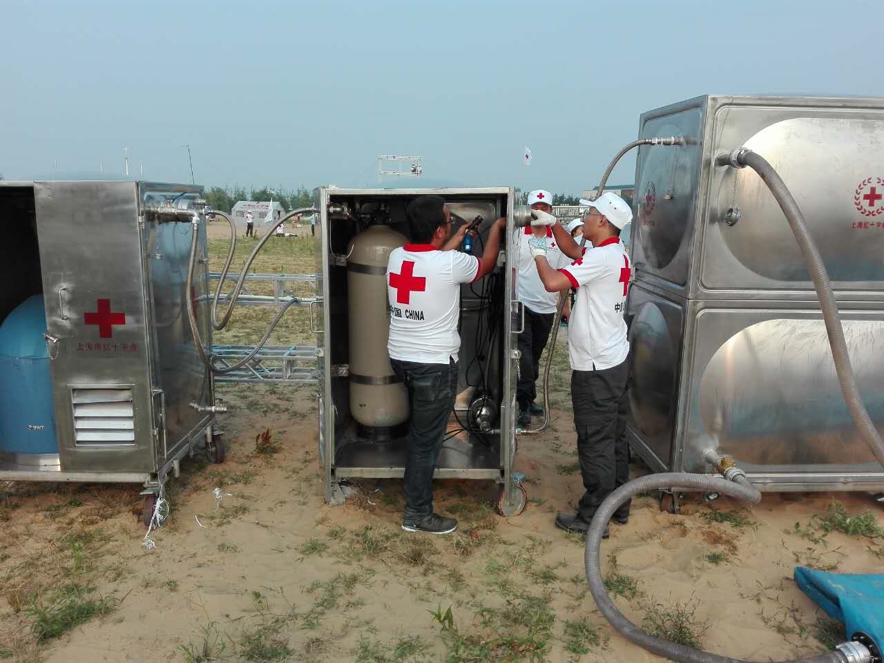 本次联合演练以水灾救援为背景,演练科目包括水上救援、伤员救护、群众转移、营地和指挥体系建设等为演练内容。上海市红十字会此次派出上海市红十字赈济救援队和上海市红十字医院的医疗救援队各一支,分别参与了营地建设、伤员现场初级救护和伤员转诊治疗、通讯保障等演练科目,并承担了营地供水任务。