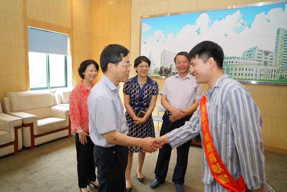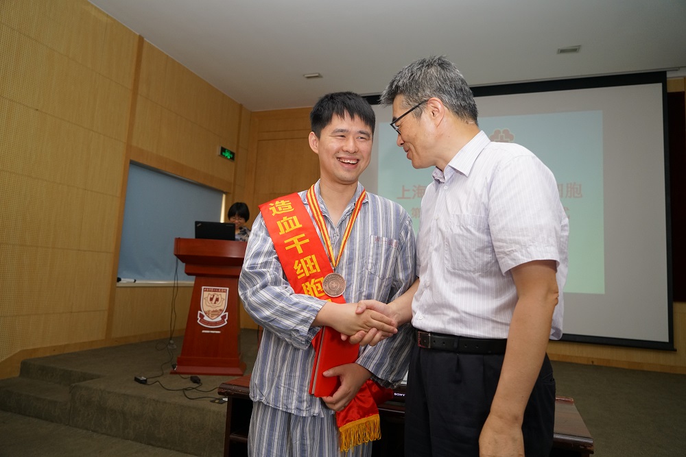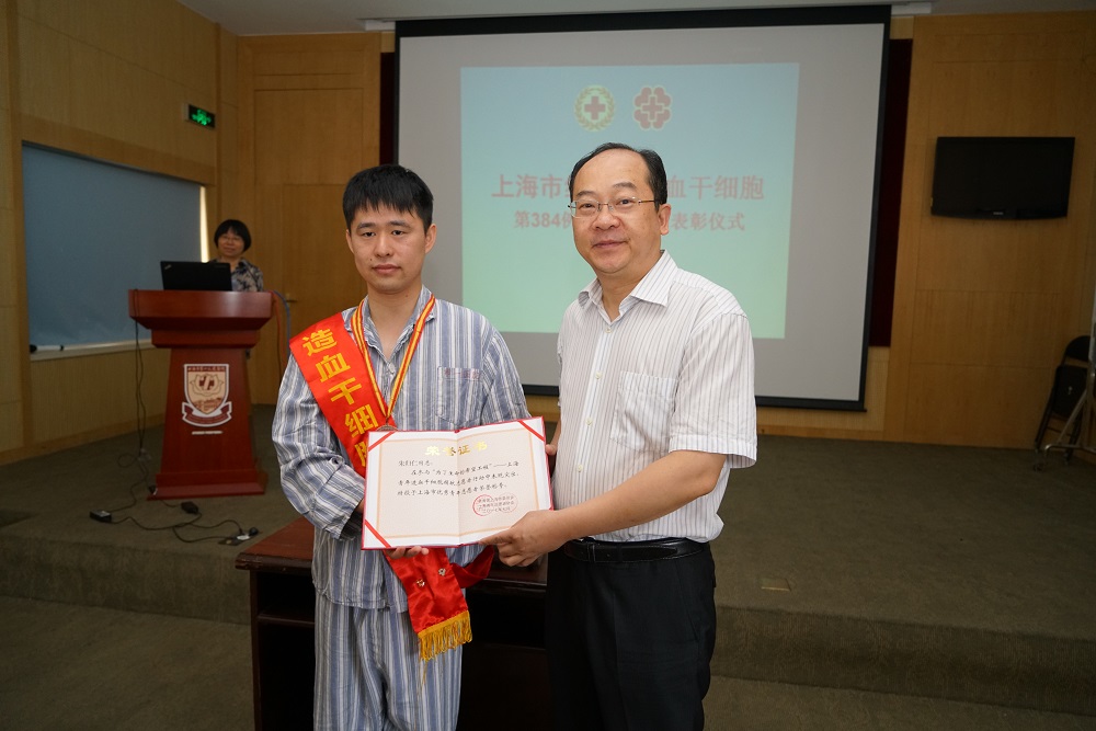 在采集前,市红十字会、松江区和上海团市委领导向小朱表示了慰问,市红十字会向小朱颁发了红十字博爱奖章,团市委授予小朱上海市优秀青年志愿者称号。