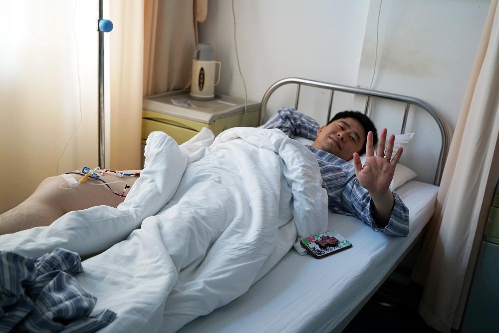 在亲人的支持下,小朱签署了捐献同意书,第二天一早在家人的陪同下来到了上海市第一人民医院,进行了动员剂的注射,并在今日上午9:15进行了造血干细胞捐献采集。