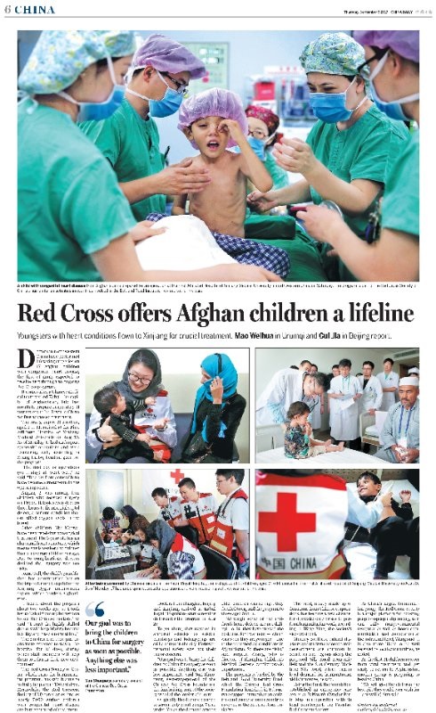 由于连年不断的不稳定局势以及受基础医疗设施和条件的制约,阿富汗当地民众特别是儿童群体的重大疾病及健康处境堪忧。围绕“一带一路”建设总体部署,这项由中国红十字和阿富汗红新月会共同发起的人道救助计划“天使之旅——‘一带一路’大病患儿人道救助计划阿富汗行动”为首批来华的21名先心病患儿带来了重获新生的希望。由中国红十字援外团队筛查出的21名阿富汗先心病患儿,8月底被接到新疆医科大学第一附属医院,接受手术治疗。