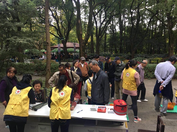 上海市红十字会为普及应急救护知识,提高公众自救互救的意识,弘扬“人道、博爱、奉献”的红十字精神,组织上海市红十字南丁格尔志愿护理服务队的志愿们于11月11日、12日两天,分别在上海辰山植物园、上海植物园、共青森林公园开展2017年假日公园红十字应急救护主题宣传服务活动。