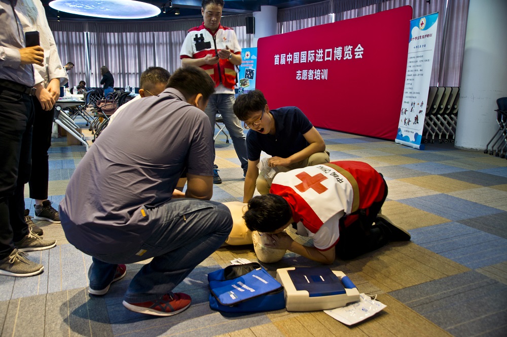 2018年中国国际进口博览会是国际贸易发展史上的一大创举,举世瞩目,意义非凡。展会规模盛大,配套活动丰富精准,将有100 多个国家和地区的企业参展,预计国内外专业采购商将达到 15 万家。根据将进博会办成国际一流博览会的总目标,为保护人的生命和健康,促进人类和平进步事业,全面落实市委、市政府对博览会保障工作总体部署和要求,市红十字会努力发挥自身优势,协助做好中国国际进口博览会的应急救护培训和现场服务保障工作,具体将为参与进博会服务的所有志愿者提供应急救护培训,并协助市卫计委在各场馆内设置AED,招募现场巡视并协助开展救护服务的红十字志愿者,在4个红十字救护服务站配备救护箱(包)、轮椅等物资,组织现场医务人员进行培训演练等。