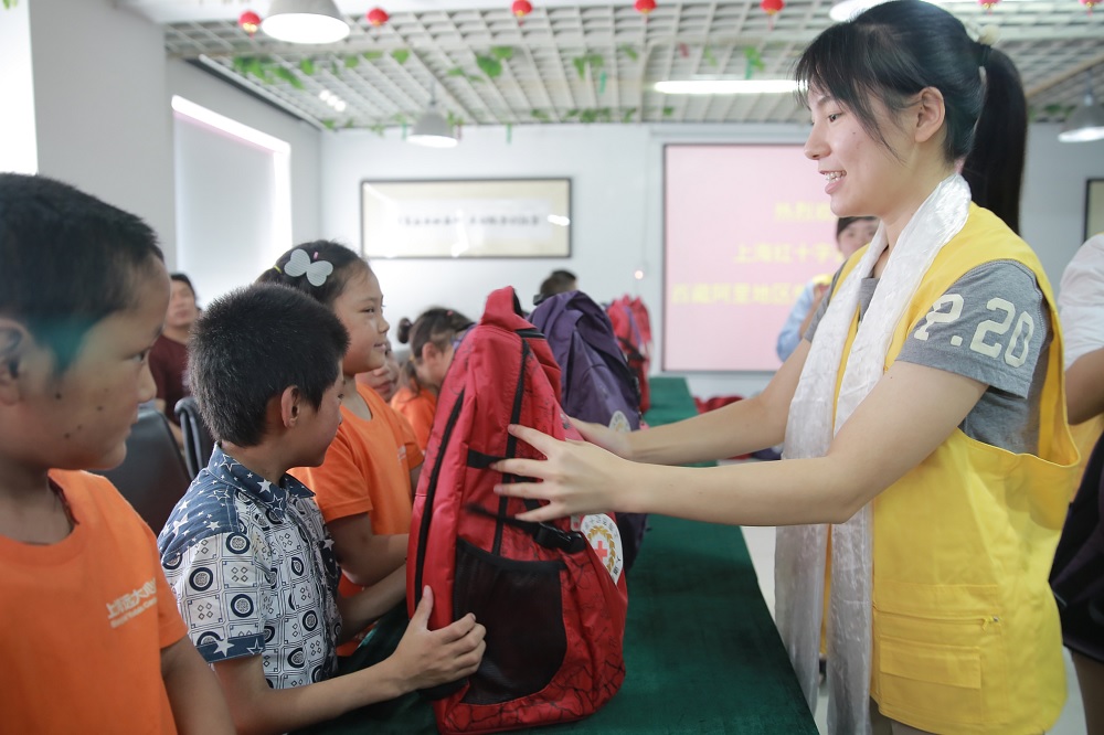 在慰问活动中,市红十字会为孩子们献上了衷心的祝福,希望孩子们可以早日康复,过上幸福快乐的生活。西藏红十字会项目负责人格桑珠杰代表西藏患儿们向上海市红十字会表示感谢,患儿代表为工作人员及志愿者们献上了洁白的哈达,以表达心中深深的感激之情。随后,市红十字会工作人员及志愿者们为孩子们分发了“爱心大礼包”,也向陪同孩子们来沪治疗的3位阿里红十字会工作人员表示感谢。孩子们双手接过礼物,连声道谢,脸上洋溢着幸福的笑容。