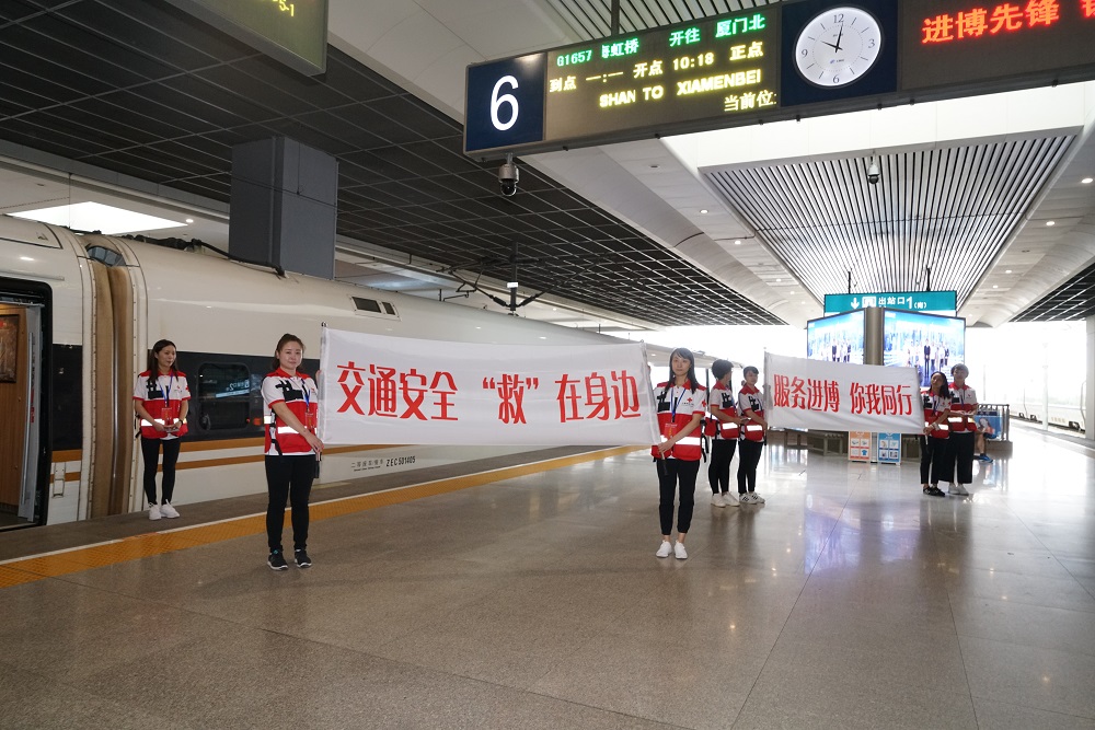 为营造迎接进博会召开的良好氛围,上海铁路部门不断提升服务硬件和软件质量。对虹桥火车站站房设施、旅客引导系统进行改造升级,广泛开展英语、手语、礼仪、安保等专题迎进博知识培训,积极投身参与市民修身、新“七不”规范宣传、文明交通、文明旅游行动;为重点旅客广泛开展“接力式”联程服务。