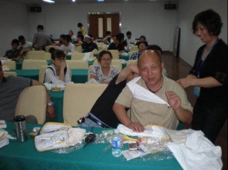 现场应急救护培训是红十字组织的一项主要职能和任务,2008年至2010年被列为市政府的实事项目之一,救护培训工作在浦东大地全面铺开,群众培训热情高涨,政府经费保障到位,师资备课认真负责,使得救护培训深入人心,深入社会。救护培训作为一项长期性工作,也是红十字会工作的重点内容之一,受到社会方方面面的重视。为此,祝桥镇红十字会本着“人人参与,共同提高”的原则,在2211年5月28日和6月11日分别为上海城市搜救队提供2天的救护员培训,镇红十字会联系培训教室,落实培训师资,落实专人负责。参加培训的45名队员来全市内的各行各业,居住地也不一样,但他们有一个共同的心愿,就是学好救护技能,为今后遇到突发事件掌握自救和互救打下基础。该批学员文化程度高,年龄轻,动手能力强,每位学员多非常认真,45名学员通过自己的学习,均取得较高的成绩。红十字“人人学急救、急救为人人”的理念得到进一步升华。