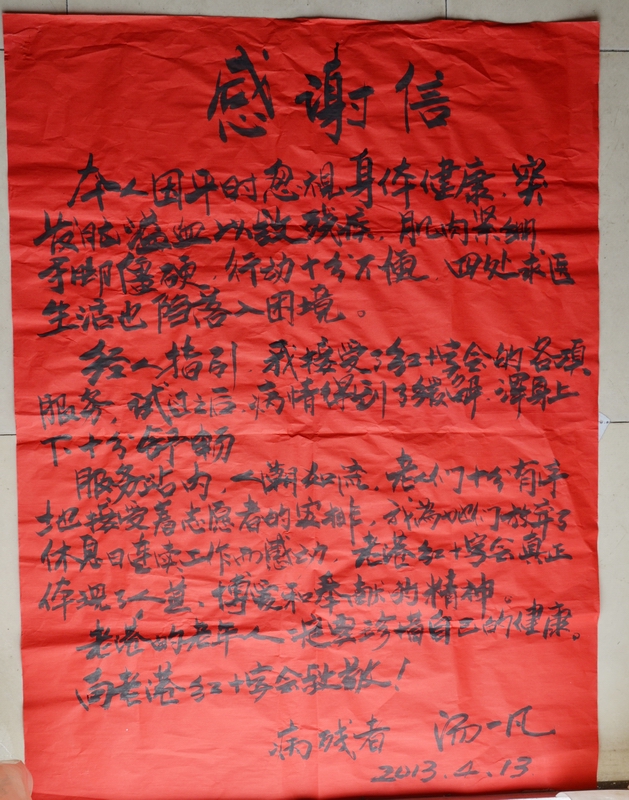 经人指导,我接受了红十字服务总站的各项服务,试过之后病情得到缓解,浑身上下十分舒畅。