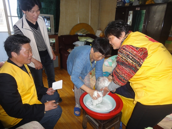 由于金杨社区区域广,服务对象分布散,街道红十字会充分发挥志愿者作用,每月志愿者及时把“失智老人关怀项目”护理用品送到每一个受助对象家里,了解老人健康状况、护理用品使用情况,协助家属解决急、愁、难问题已成了志愿者的习惯。