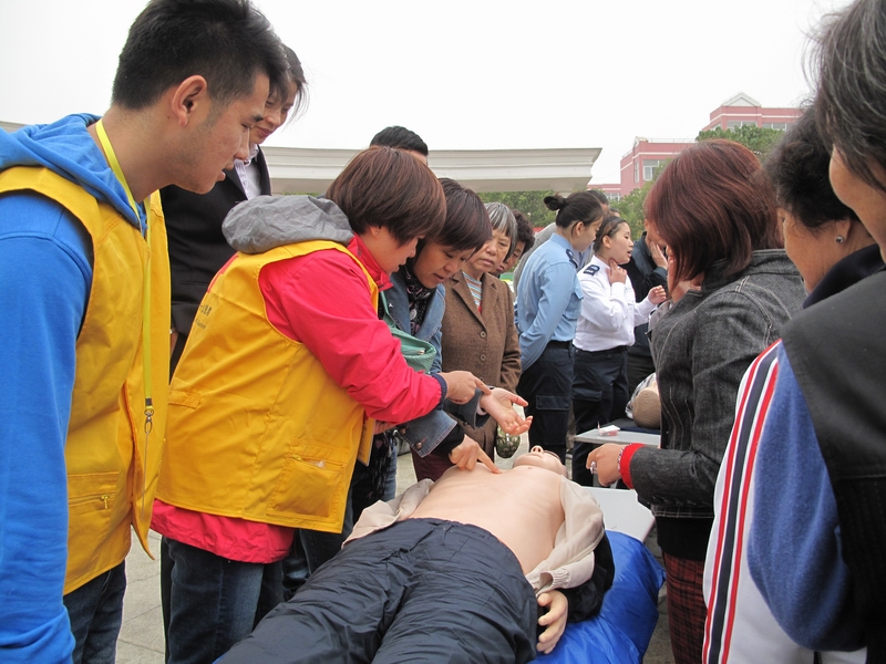 11月9日上午金杨社区“参与社区消防,建设平安家园”为主题的大型消防安全日活动在金杨花园举办,金杨街道红十字会组织街道救护队骨干助阵活动宣传。