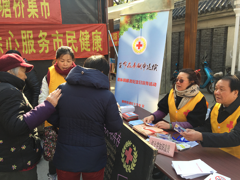 为了更好的宣传遗体(角膜)捐献的意义,塘桥街道红十字会结合“3.5”日学雷锋活动,在社区设立5个点宣传红十字精神,宣传遗体捐献的意义。
